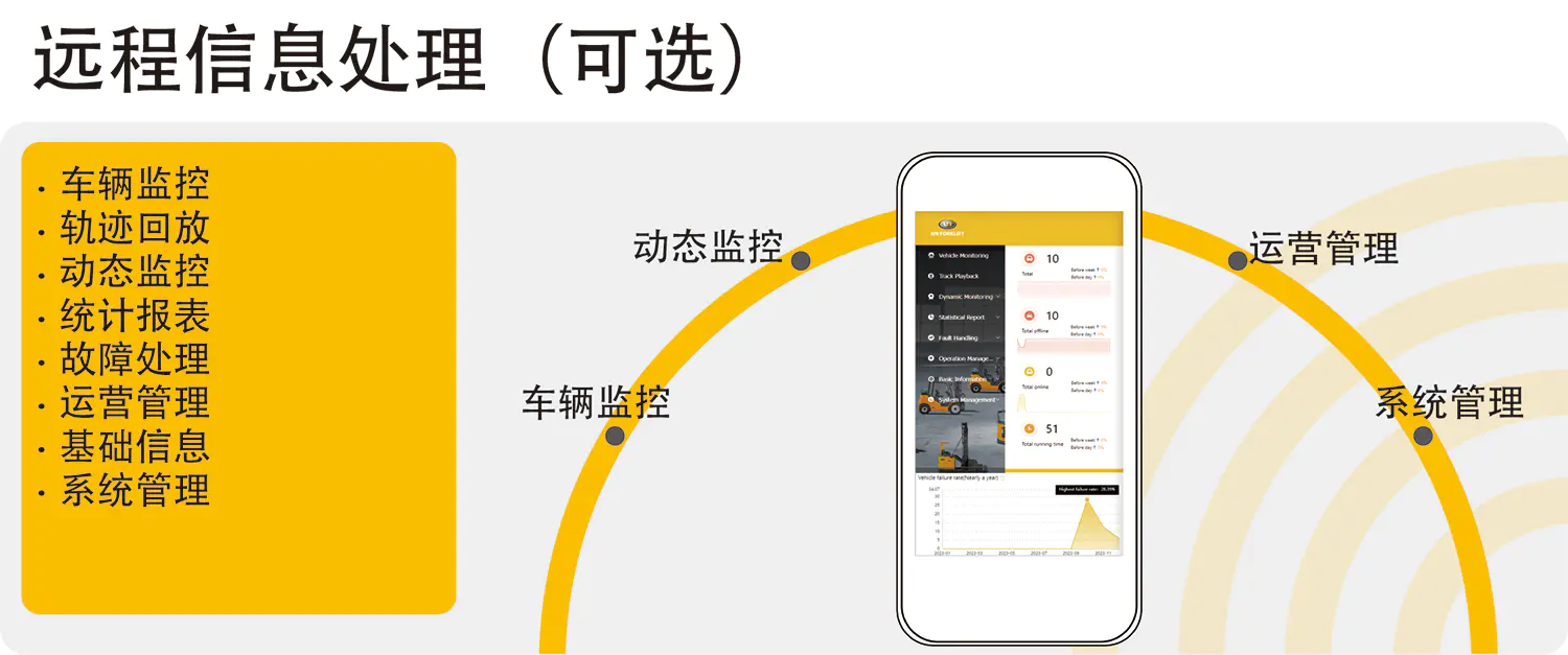● 坚固和强化的车身结构,采用了同内燃叉车一样的车桥和门架,使其在重型应用中更安全和更可靠。